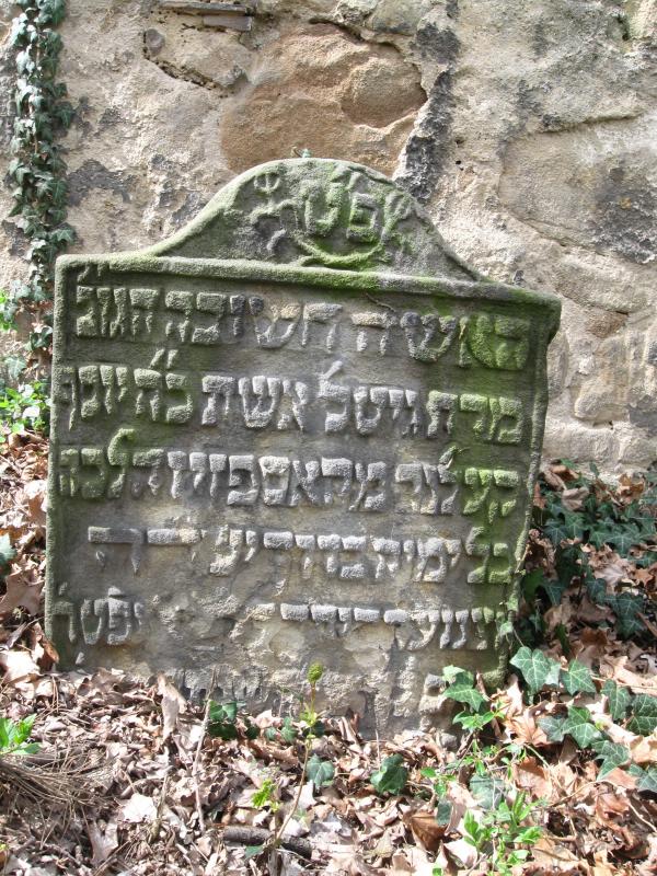 פט האשה חשובה הגונ* מרת גיטל אשת כה יוסף קעלנר מהאספזין הלכה כל ימיה בדרך ישרה וצנועה הירה כדבורה נפטר* ביום ג* כ אייר שנת תקסד לפק תנצבה