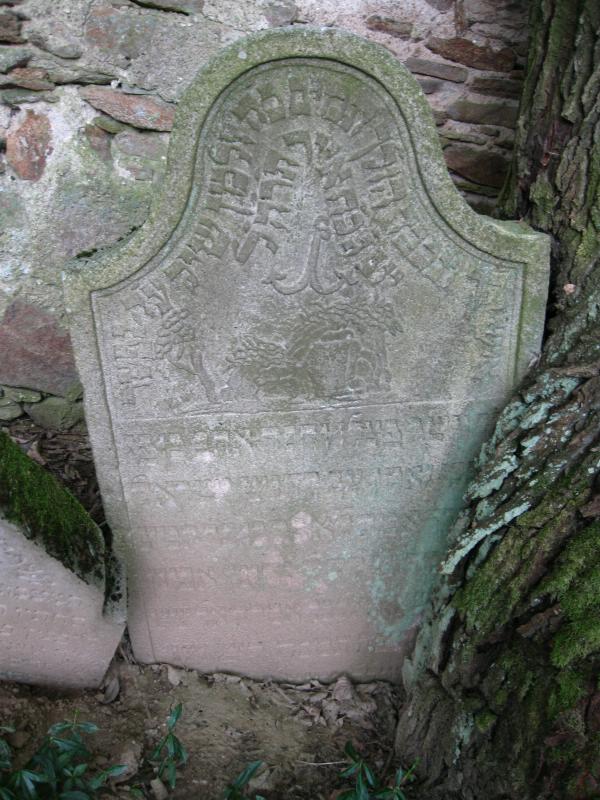 Ryzí a vážený člověk, kráčíval bezúhonně. Takový býval vážený pan Zalman Schick, který skonal třetího dne v týdnu, de 25. ijar 5605 =o= Křišťálově ryzí a přímé byly jeho skutky, milosrdenství miloval víc než zlato přečištěné (*paz) / A jeho srdce bylo věrné Svatému Jisroele / Jako vpravdě bezúhonný rek nikdy neuhnul z cesty Pravdy / Potřebným rozdával z vlastního majetku a slitovával se nad chudými. / Nenáviděl úklady a lež, každé jeho slovo patřilo Nebesům (šem-šamajim) / Laskavou rukou podporoval ubohé chudé / Sklizeň svých vlastností najde tam v příbytku Spravedlivých ... =o= Bez ohledu na vlastní epitaf a jeho poměrně kultivovaný text (včetně dvojitého kryptogramu *Zalman Schück tvořeného nejen počátečními, ale i koncovými znaky jednotlivých řádků epitafu) - stojíme u náhrobníku s výjimečnou funerální plastikou, o které se již starší badatelé (Blan) vyjadřují jako : *künstlerich ausgeführt, totiž u symbolu kotvy a jeskyně Machpela. Značka i.3 za příjmením v tabulce označuje číslování podle K. Blana. Náš přepis je přesnější, pan x. Blan však měl možnost dočíst epitaf až k tancevě, jelikož u něj stál o osmdesát let dříve. Tenká čára v zápisu naznačuje, odkud čerpáme přímo z jeho podkladů (dnes již pohlceno stromem);