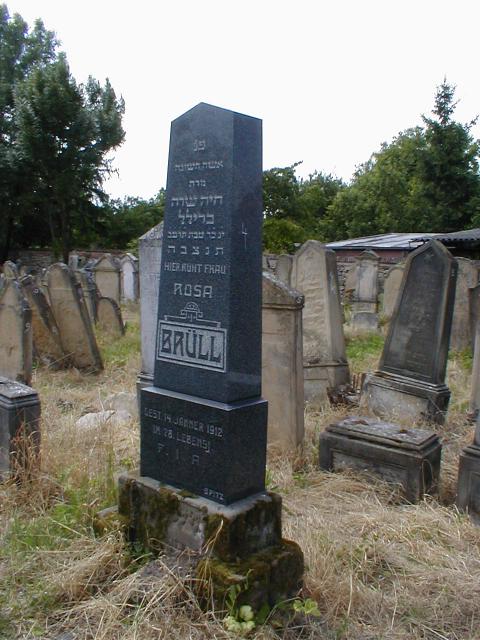 h: paní Chaje Sara Brüll 24. tevet 5672. --- Hier ruht Frau Rosa Brüll gest. 14. Jänner 1912 im 78 Lebensj. F. I. A. ------------ J. Spitz --oo
