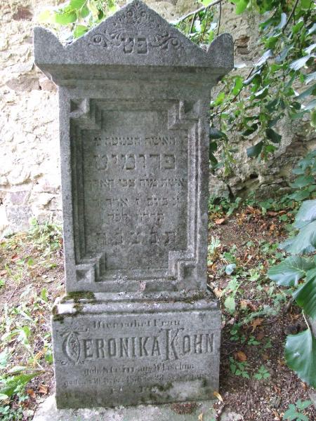 heb. Frumet Kohn, choť pana Cvi 7. adar 5638 == Hier ruhet Frau Veronika Kohn geb. Stein aus Wlaschim gest. am 10. Februar 1878, im 23. Lebensjahre